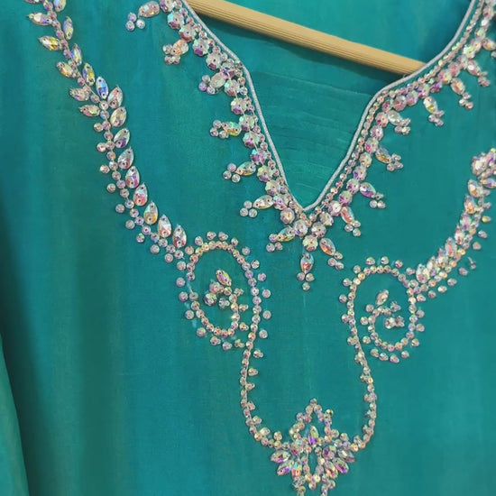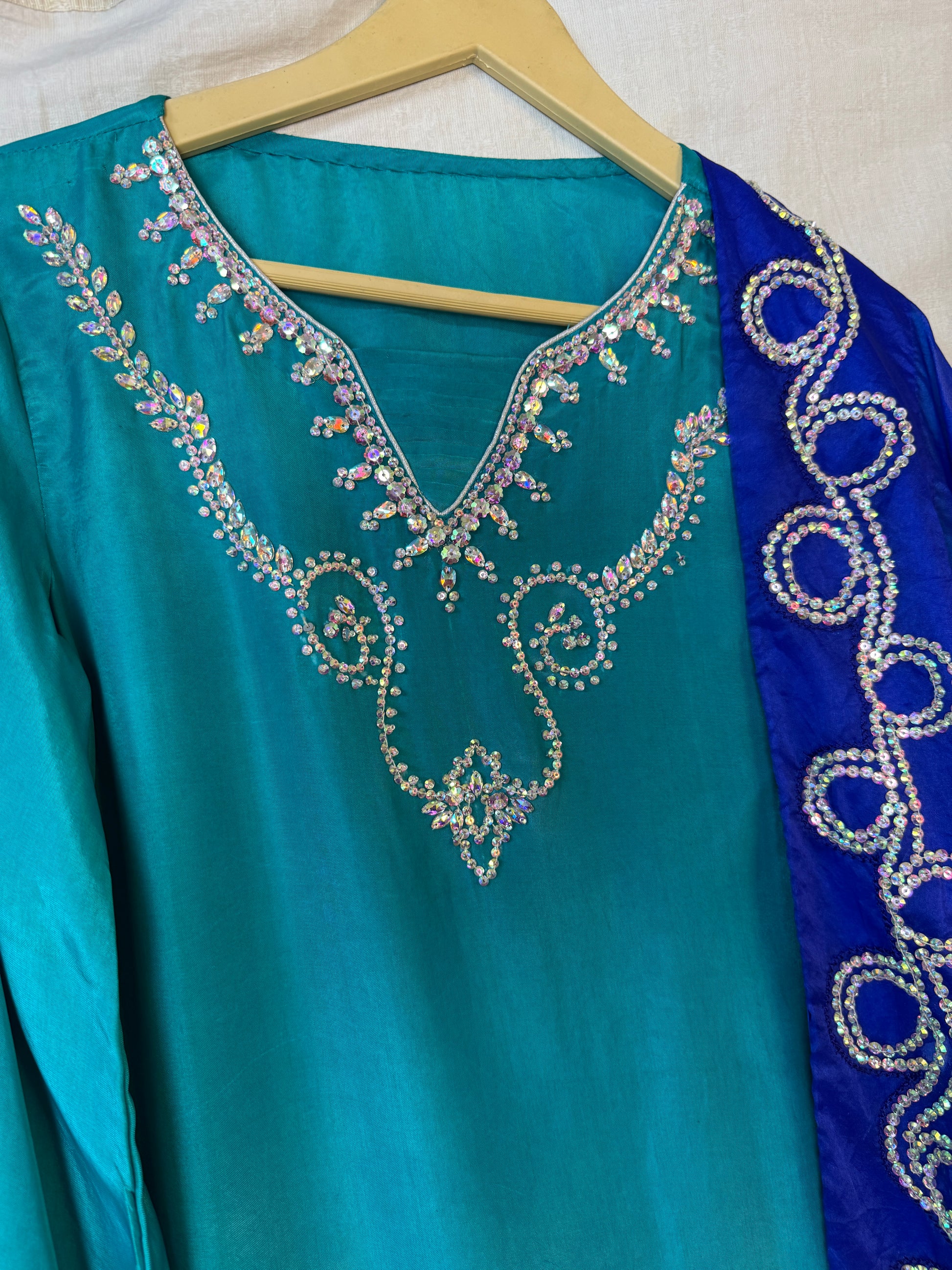 ZARNIGAR - 3pcs Aqua Blue Shirt with a Shalwar and dupatta is our most delicate piece of work.