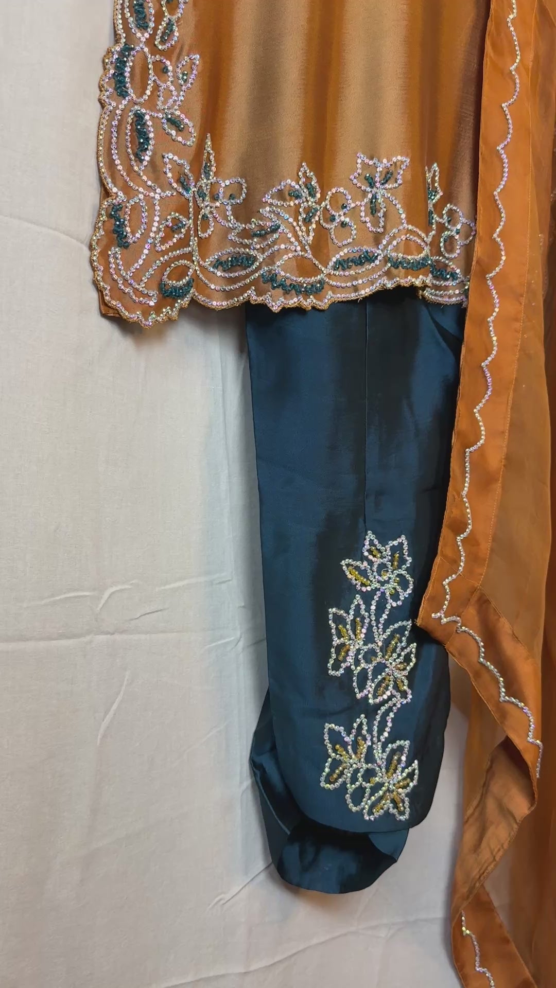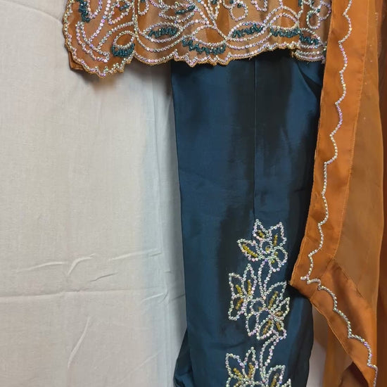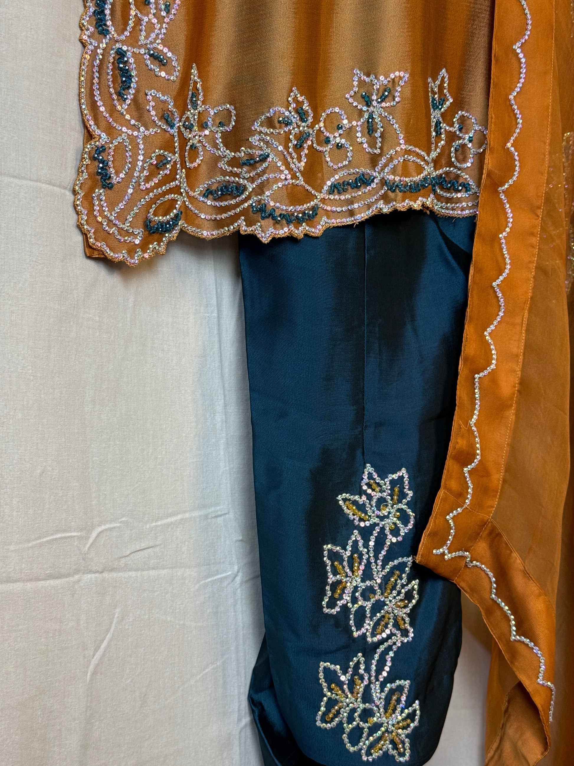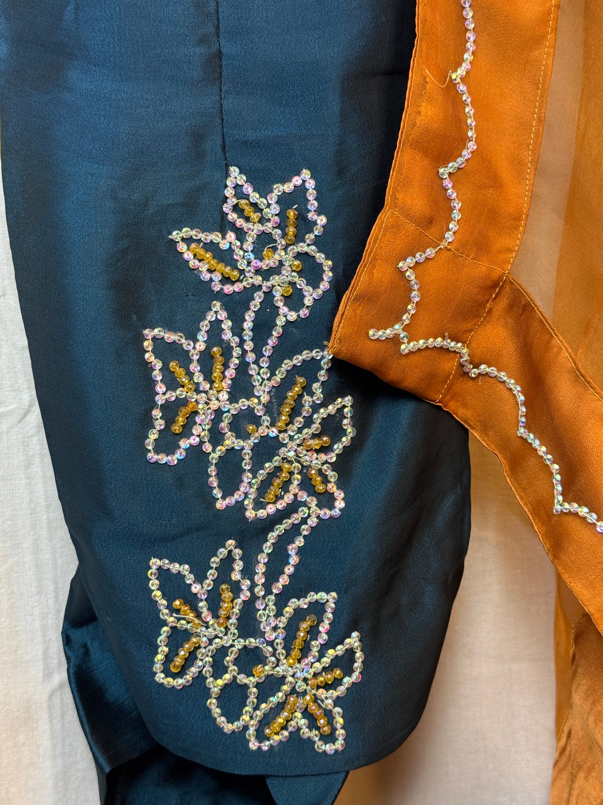 ZARNIGAR - 3pcs Mustard Shirt with a Farsi Shalwar and dupatta is our most delicate piece of work.