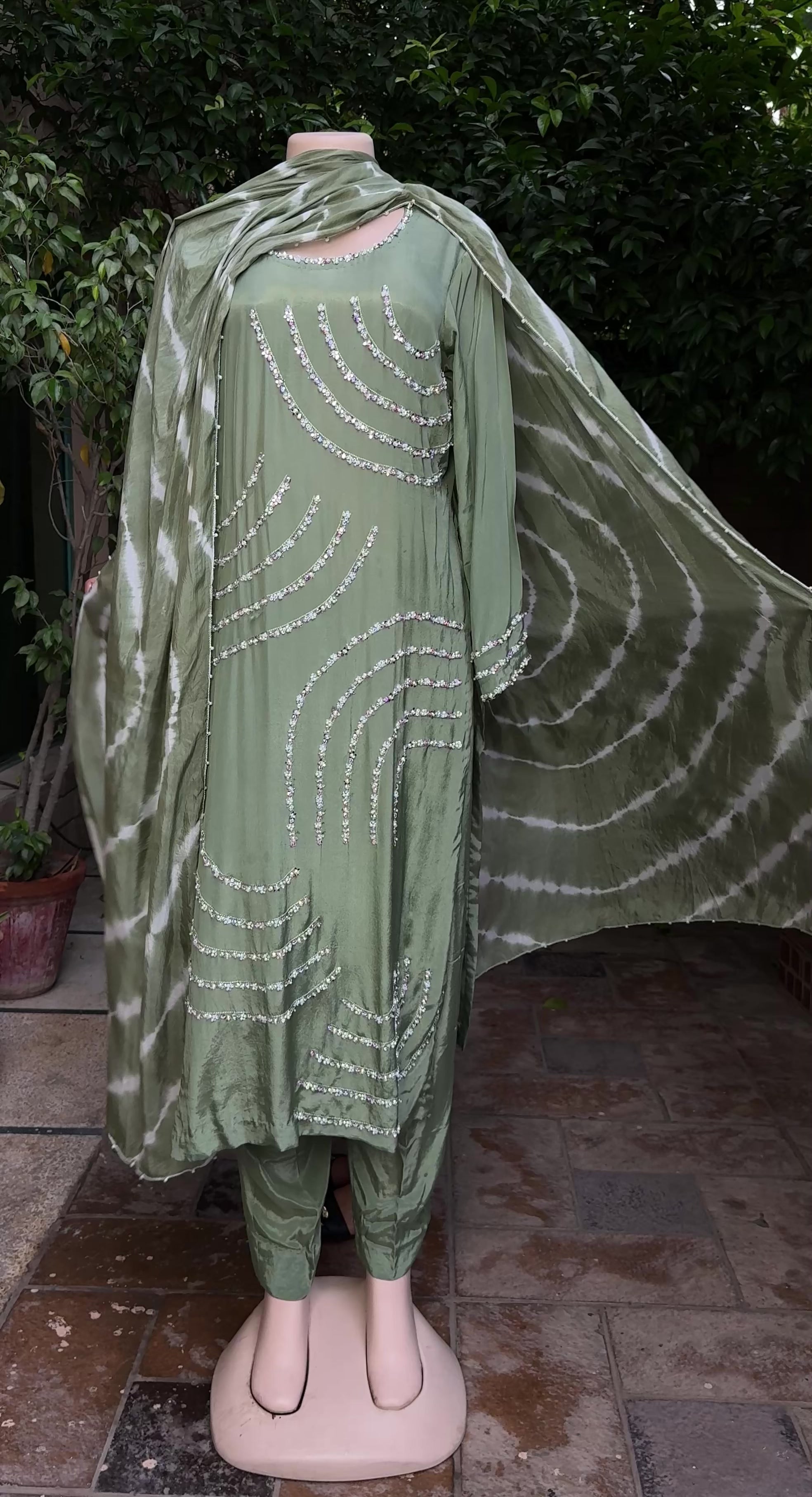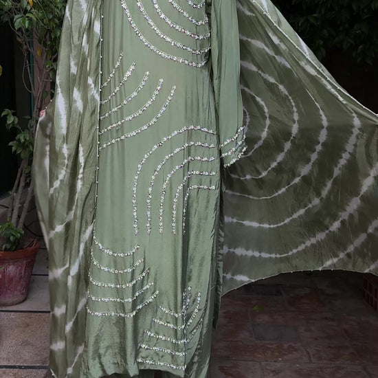 ZARNIGAR - 3pcs Olive Green Shirt with a Shalwar and dupatta is our most delicate piece of work.