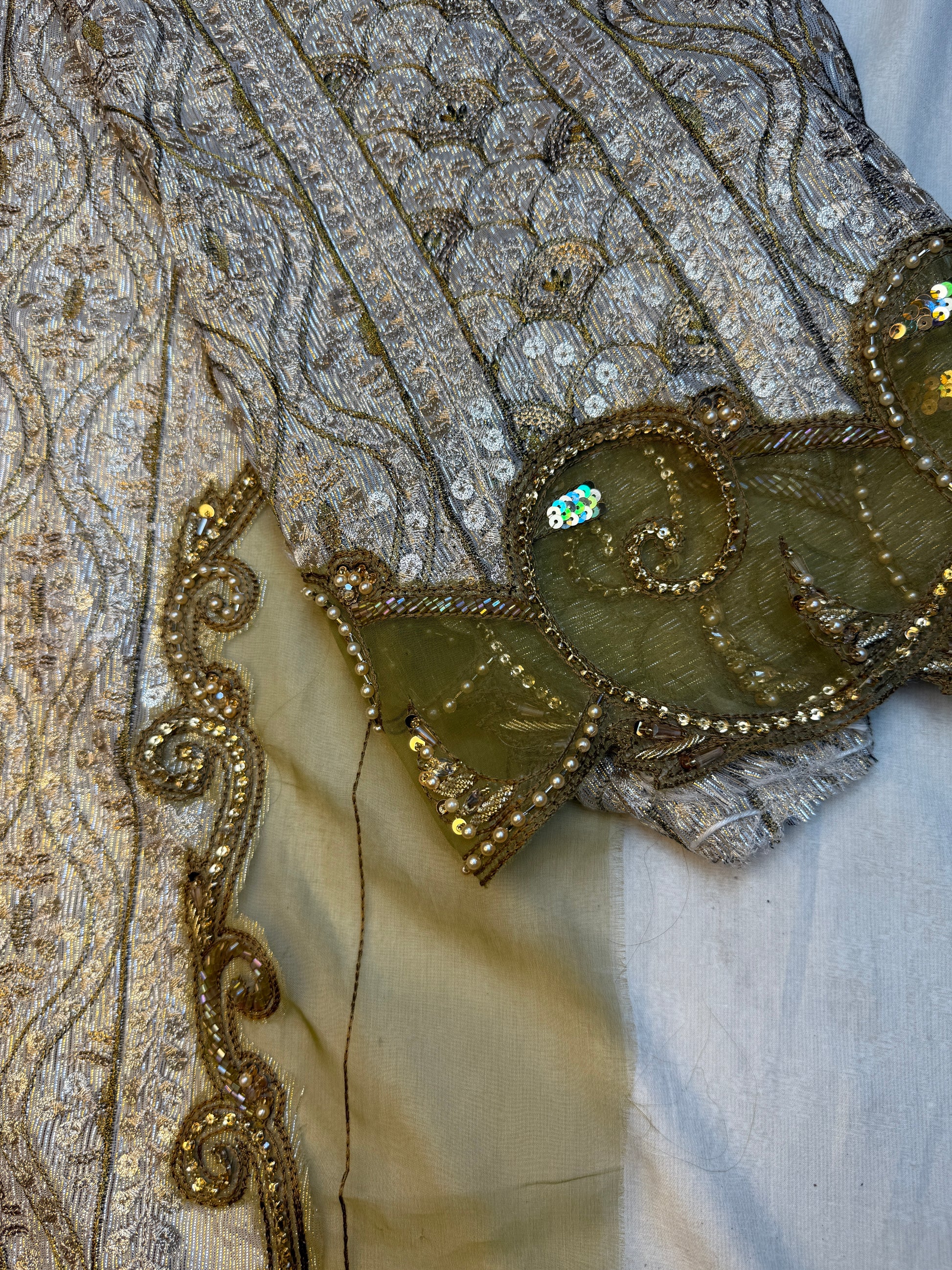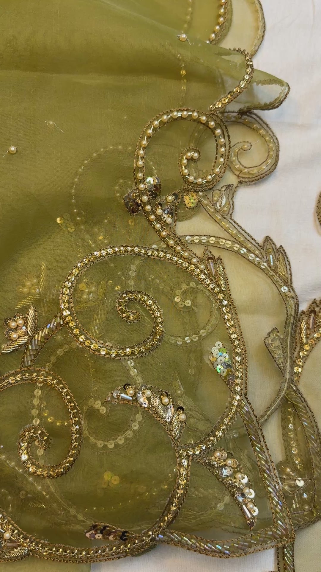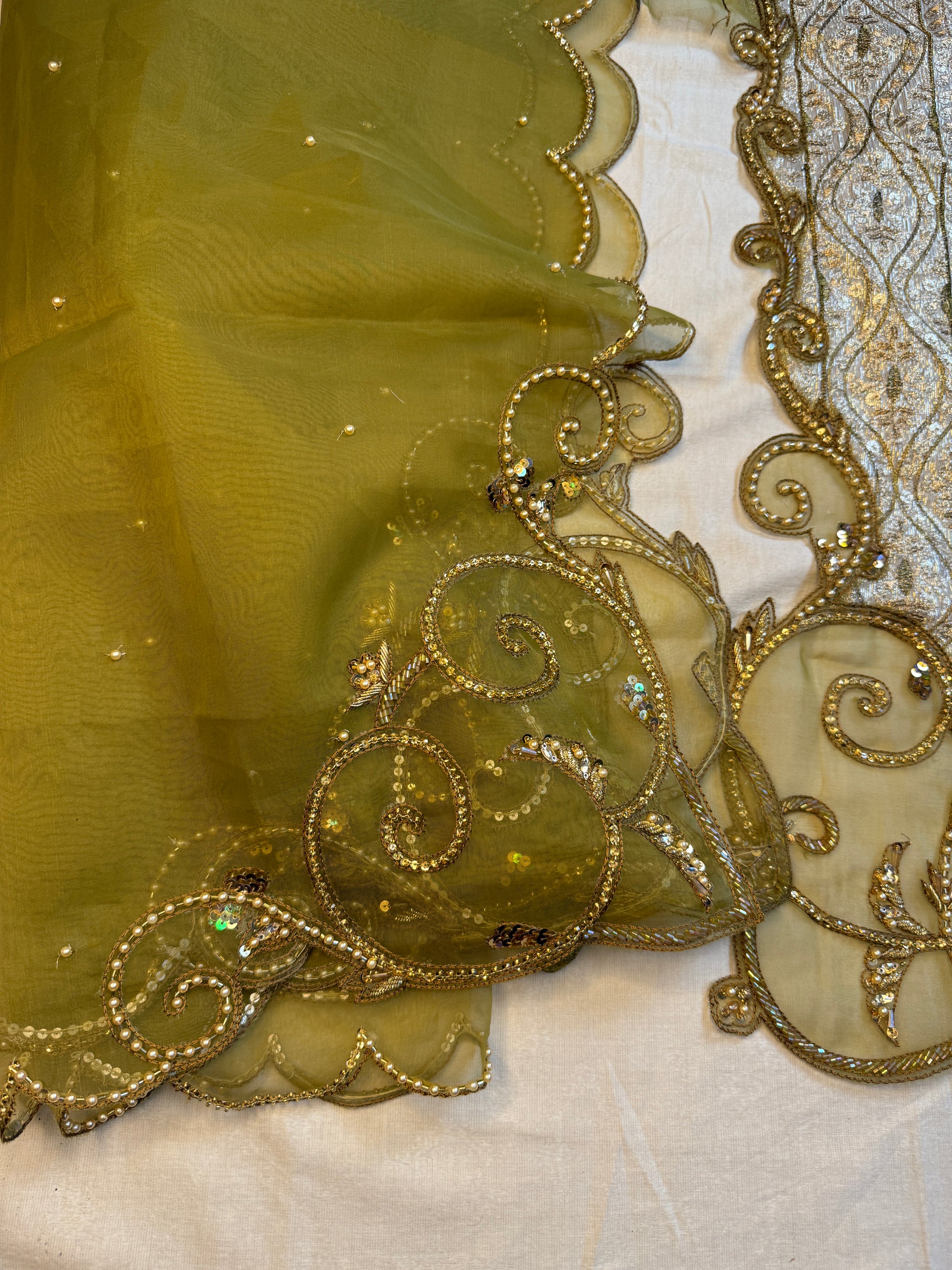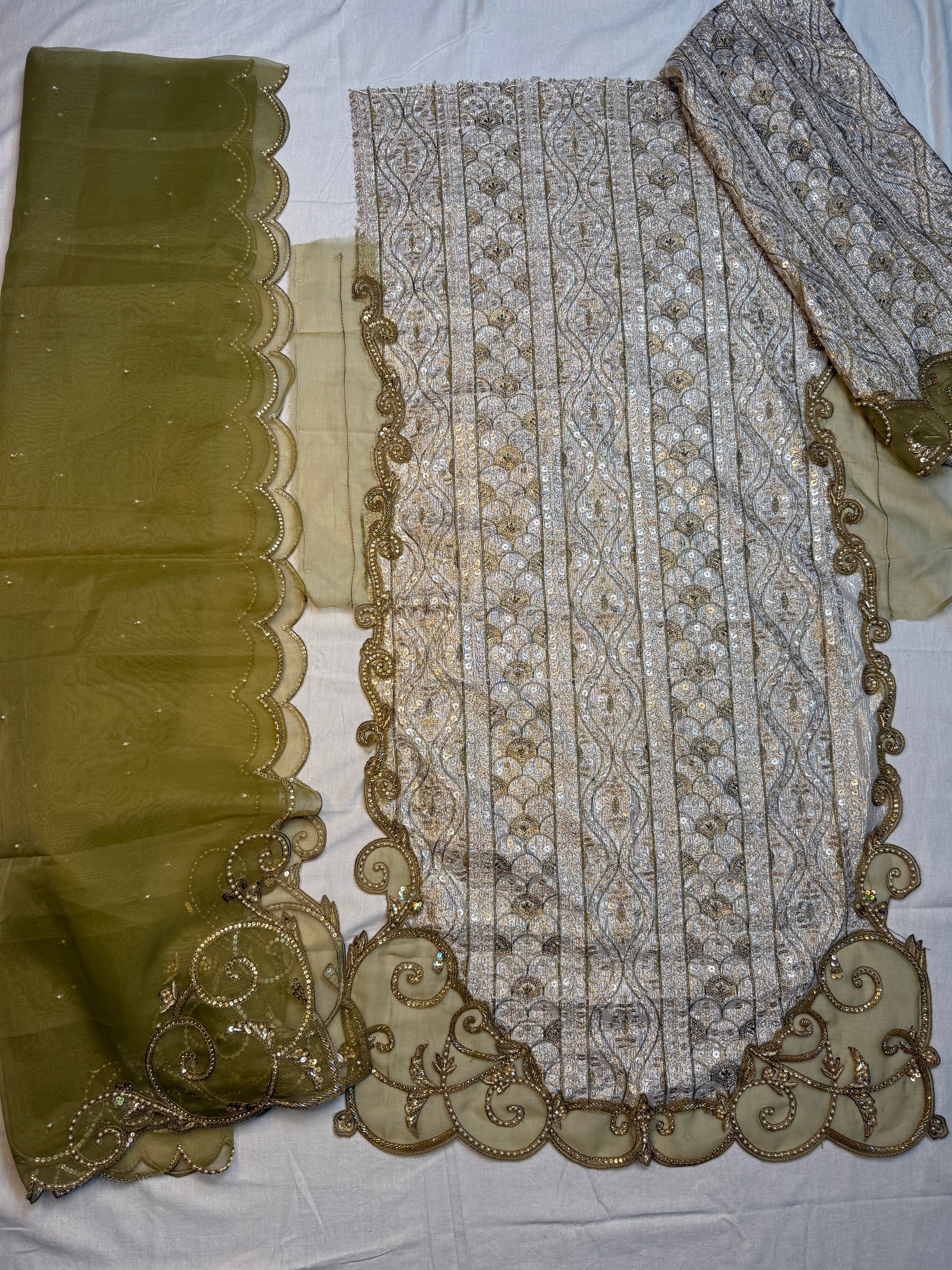 ZARNIGAR - 3pcs Olive Green Shirt with a Shalwar and dupatta is our most delicate piece of work.